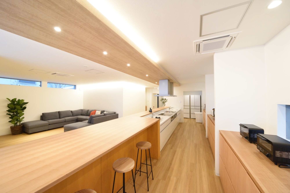 そしてこちらがZEZE OSAKAの1Fキッチンよりリビングを見ている眺めとなります。どうでしょうか?実際の間取り図から読み取れたイメージと似ていましたか?インテリアや、壁の色などは間取り図には描かれていないので、少しイメージとは違ったかもしれませんね!色や、デザインも少し予想しながら間取り図を見ると更に、おもしろくなりますよ♪