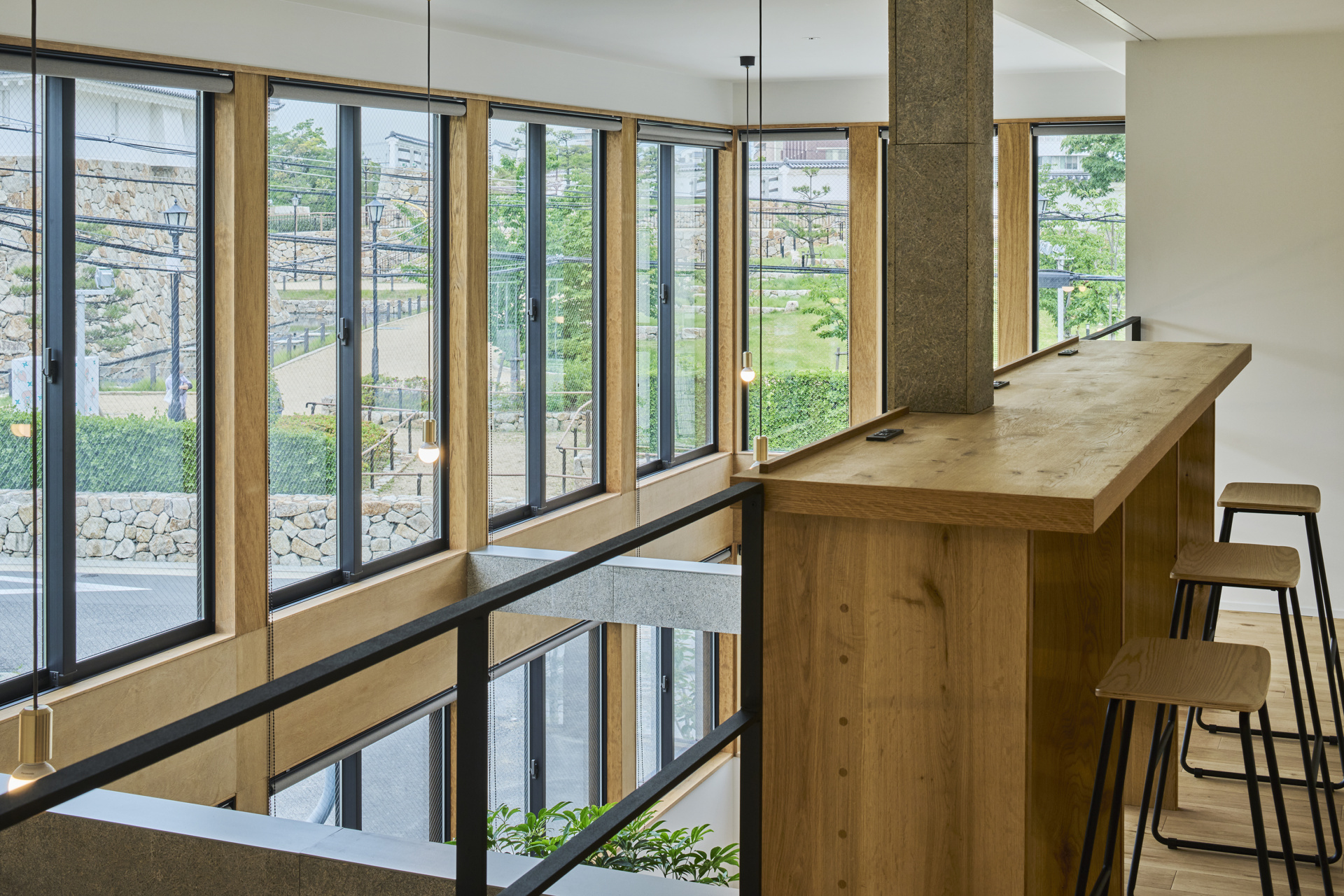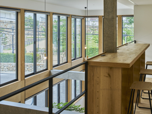 さらに2階には、尼崎城や公園を眺められるカウンター席も。