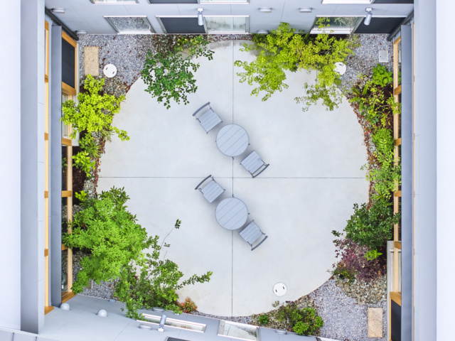 • 日光を浴びながら集中できる 中庭テラス。